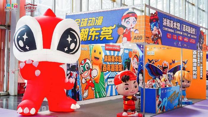 在IP授权展区,洪梅美术馆(百年国漫陈列馆)携猪猪侠、菲菲公主、百变校巴、喜羊羊与灰太狼、开心超人、列车超人、奶龙、吾皇猫、虚无边境-珊瑚、劳拉Laura 等动漫IP闪现,吸引了众多专业观众及市民的目光。“动漫+文旅”的跨界换新助推东莞水乡洪梅的创造性转化,展现了新洪梅的人文城市面貌。