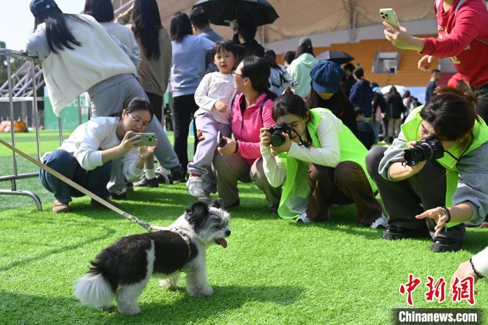 12月7日,广东广州,第六届广东省宠物文化节在华南农业大学东区运动场举行,现场设100余个活动摊位,包含多项宠物赛事、互动游戏、宠物服务,宠物文化区等,吸引宠物爱好者参加。图为宠物摄影体验区。中新社记者 陈楚红 摄