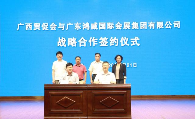 5月21日,广西贸促会与广东鸿威国际会展集团有限公司签署战略合作协议,双方协定于2020~2022三年间围绕会展业开展深度战略合作,联合举办优质会展活动,共同培育打造会展品牌,共同开展会展人才培训,携手布局国内外市场,为优化广西会展业战略布局、促进广西会展业高质量发展、深化东融合作、实现产城融合作出积极努力。双方首批合作项目包括清洁能源、纺织产业方面的博览会等。