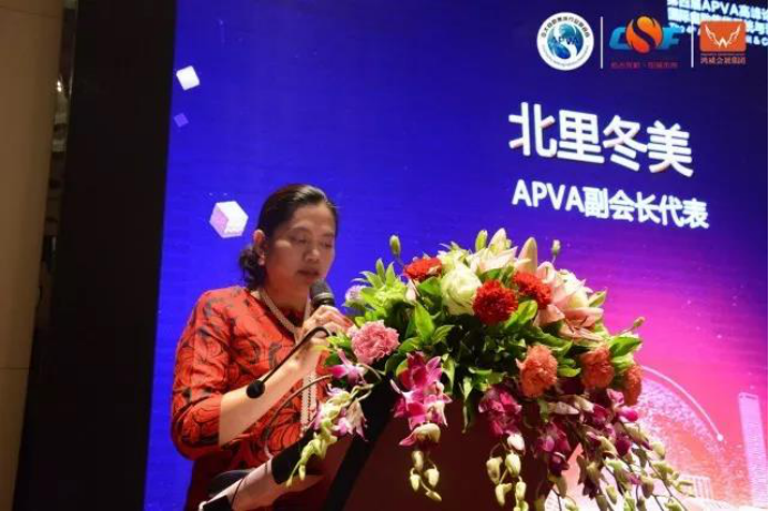 APVA副会长代表北里冬美致辞:分析了目前自助售货与新零售的新形态现况,并希望在亚太自助售货行业联合会于会长的领导下行业更规范,资源更融合,发展更稳健,并预祝2018中国(广州)国际自助售货系统与设施博览交易会圆满成功。