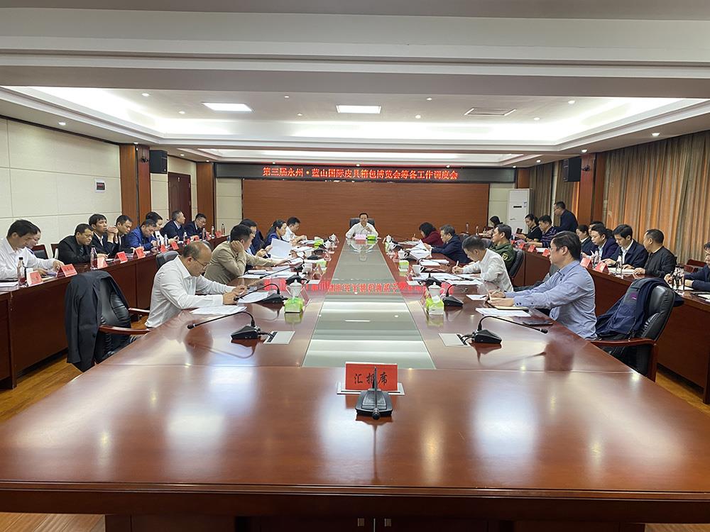 今日永州讯(蓝山特约记者 徐康妮)3月22日,县委书记龙向洋主持召开第三届永州•蓝山国际皮具箱包博览会筹备工作调度会。县委副书记、县长邓群,县委副书记、统战部长唐伟文,县领导赵忠辉、刘素萍、邓海勇、张国材、何福明、周涛、黄加葵、欧阳能上等参加。