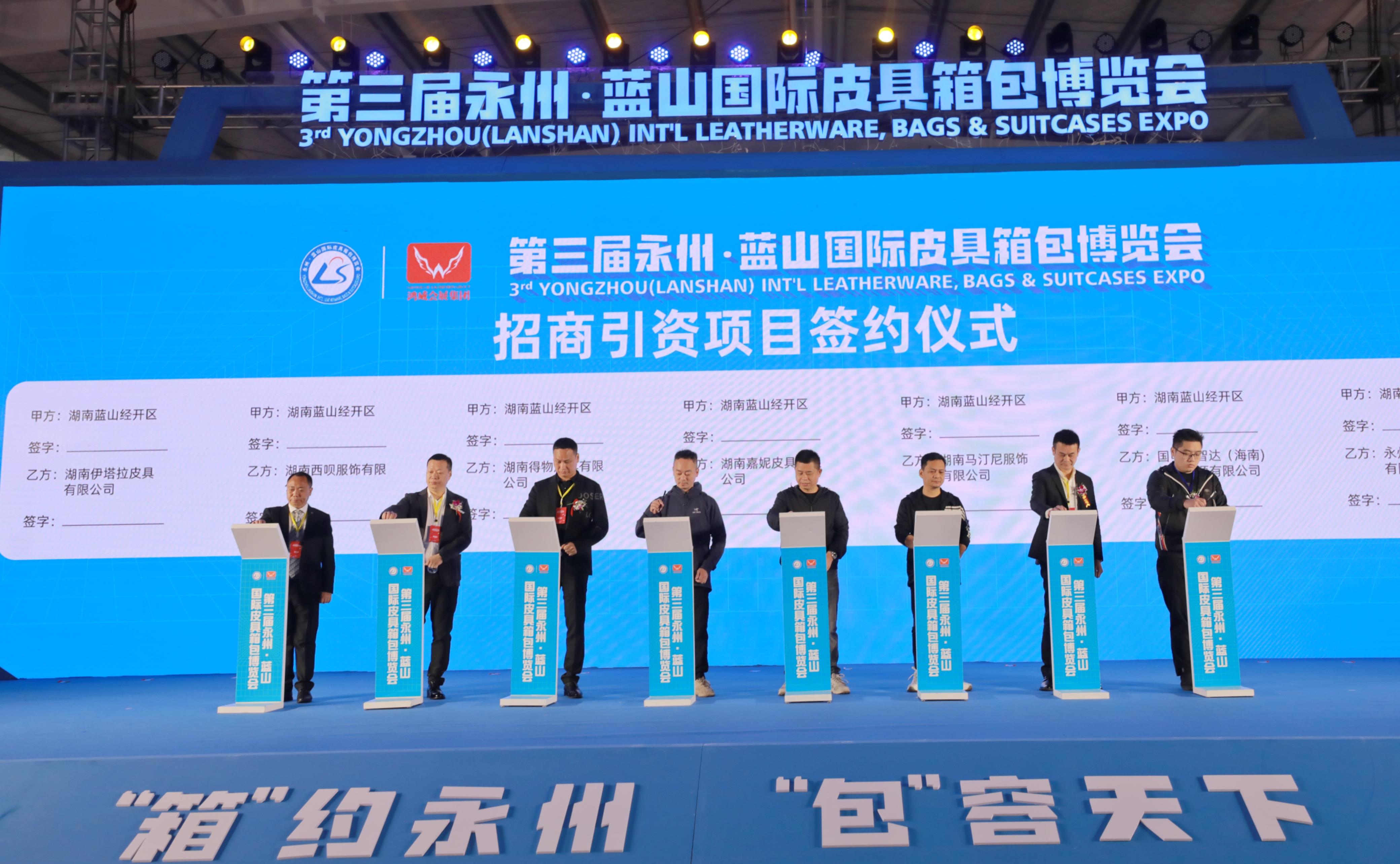 近年来,永州坚持把发展产业当使命、抓项目建设像拼命、视营商环境如生命,紧扣实体经济这个着力点,深入推进向南向海向外开放发展,以五大主导产业为支撑的开放型经济体系加速构建。蓝山县的皮具箱包玩具产业发展势头强劲,呈现集群式落地、抱团式入驻、链条式发展的良好态势。据悉,前两届永州·蓝山国际皮具箱包博览会,共吸引各类企业8000多家、布展商651家参展,观展人数近13万人,现场签约企业20家,总投资达25亿元,实现经济效益、社会效益和旅游效益相统一。