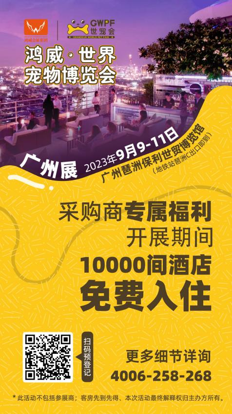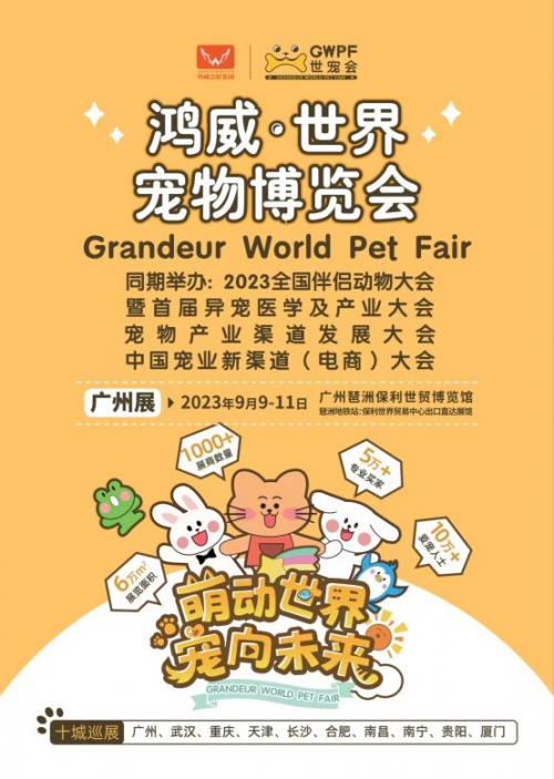 2023年9月9日-11日,广州保利世贸博览馆,10万+爱宠人士和5万+采购商都会来的鸿威•世界宠物博览会(GWPF世宠会),热忱期待您的加入,和我们一起见证国内宠业品牌的诞生与成长,多城联动,商贸交流,对话全球,加速国际化战略进程,共筑引领世界风向的宠业新标杆!