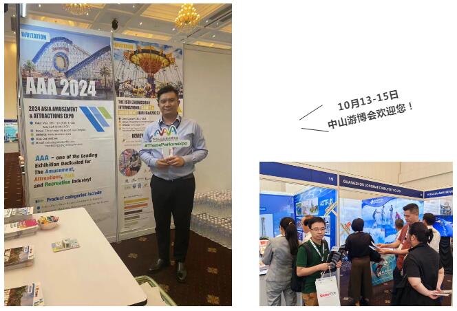 展会现场,组委会工作人员除了对商协会、买家团和采购商一对一宣传邀约外,还在现场展位投放了2023第十五届中山游博会(点击了解)和2024第20届亚洲乐园及景点博览会(点击了解)的宣传海报和物料,进一步展示展会内容和信息,详细介绍展会的情况及明年观众组织工作,吸引东南亚专业买家关注。