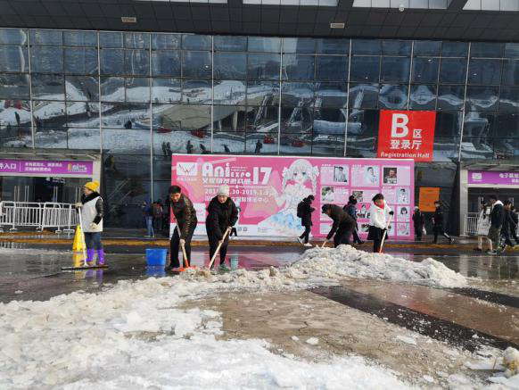 2018年12月30日,第十七届艾妮动漫游戏展开展第一天,迎来了这个冬天的第一场大雪,伴随着凛冽的寒风,气温骤降,道路积雪,路面结冰,给来参展的展商和观看艾妮漫展的漫迷们出行造成了不便。尽管如此,前来参加漫展的漫迷们依旧热情不减。