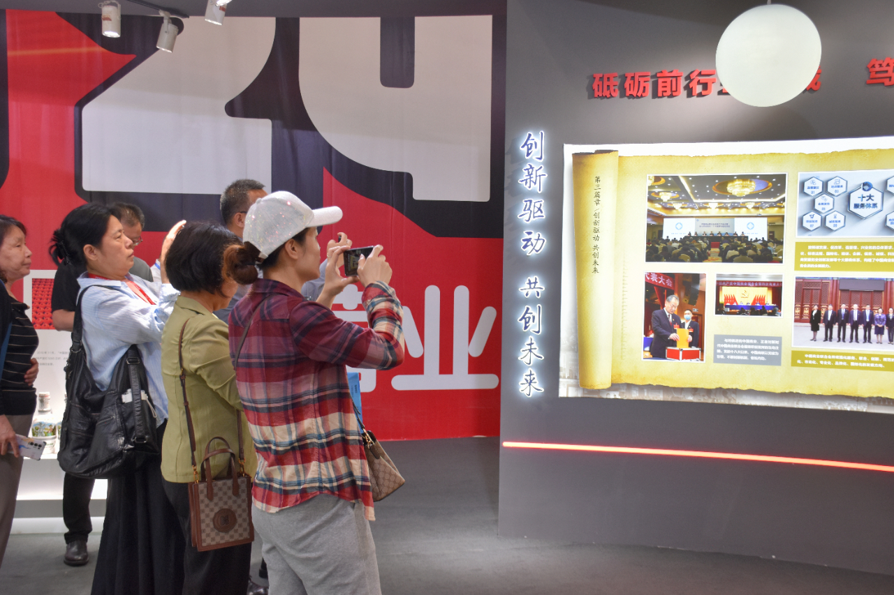 现场观众参观中国商业联合会30年主题展览,拍照记录中国商业与时俱进,在发展道路上“创新驱动,共创未来”的精彩瞬间。