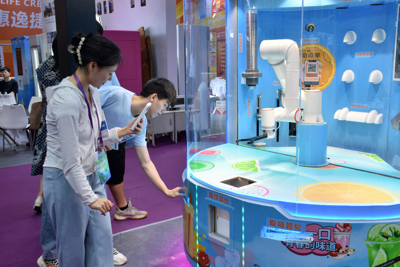 中国商报记者亲身体验机器人奶茶贩卖机。